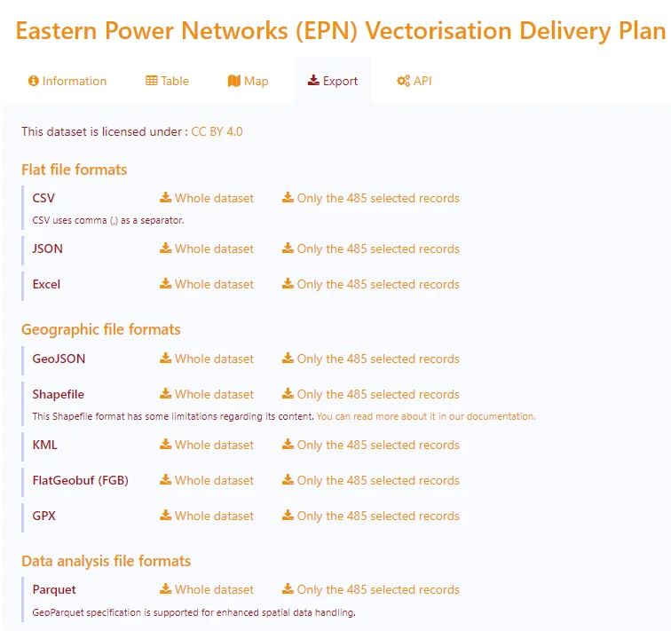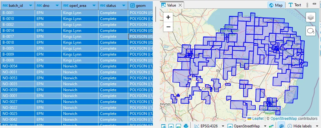 Let's look at an example, this week I discovered that UK Power Networks Open Data Portal now offers data in Parquet/Geoparquet and FlatGeoBuf. I wanted to review the spatial data relating to a project we at Avineon Tensing are supporting at UK Power Networks, the Eastern Power Network Vectorisation Project.