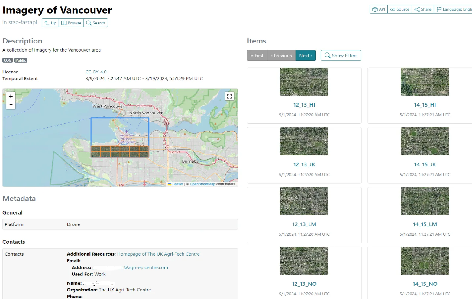 UK Agri-Tech Centre wanted to deploy a local STAC, that could be used to catalogue all the drone datasets collected, ensuring users work with these datasets from the same source and maintain robust attribution, are indexed, and most importantly are discoverable. This includes hyperspectral and point cloud datasets from agricultural land in the UK.