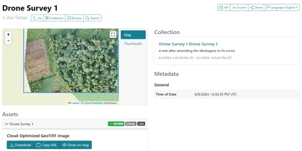 Figure 5: UK Agri-Tech Centre - Example Drone Cloud Optimised GeoTIFF Asset in STAC