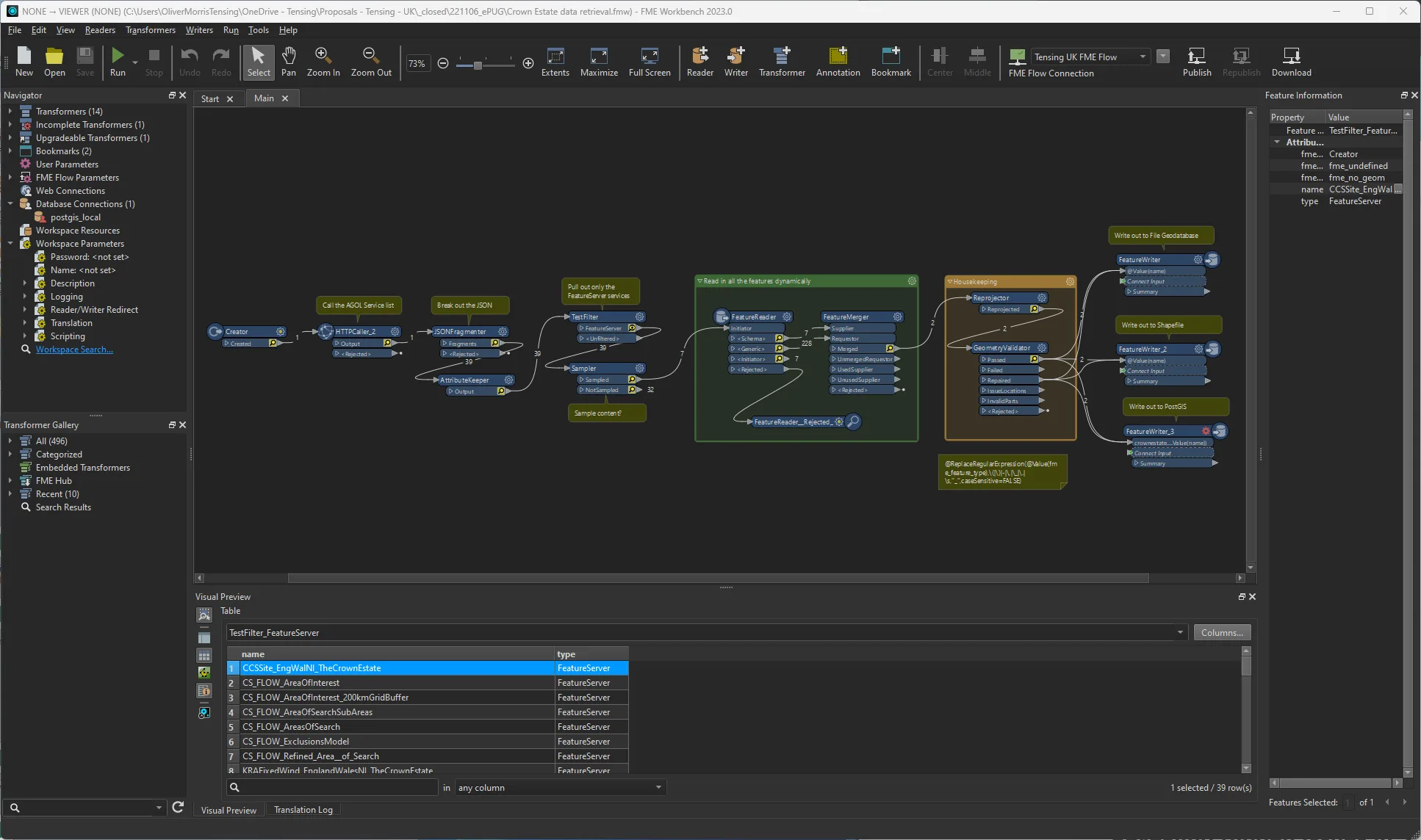 - Self-documenting capabilities: The process of building a workspace in FME is inherently self-documenting. As you construct your data transformations, you're automatically creating a clear map of your process, which makes it easier to understand and refine your work.