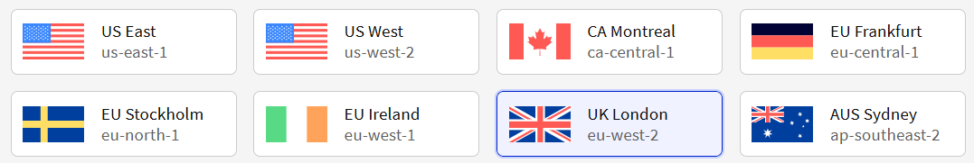 The specific AWS regions supported by FME Flow Hosted are as follows: