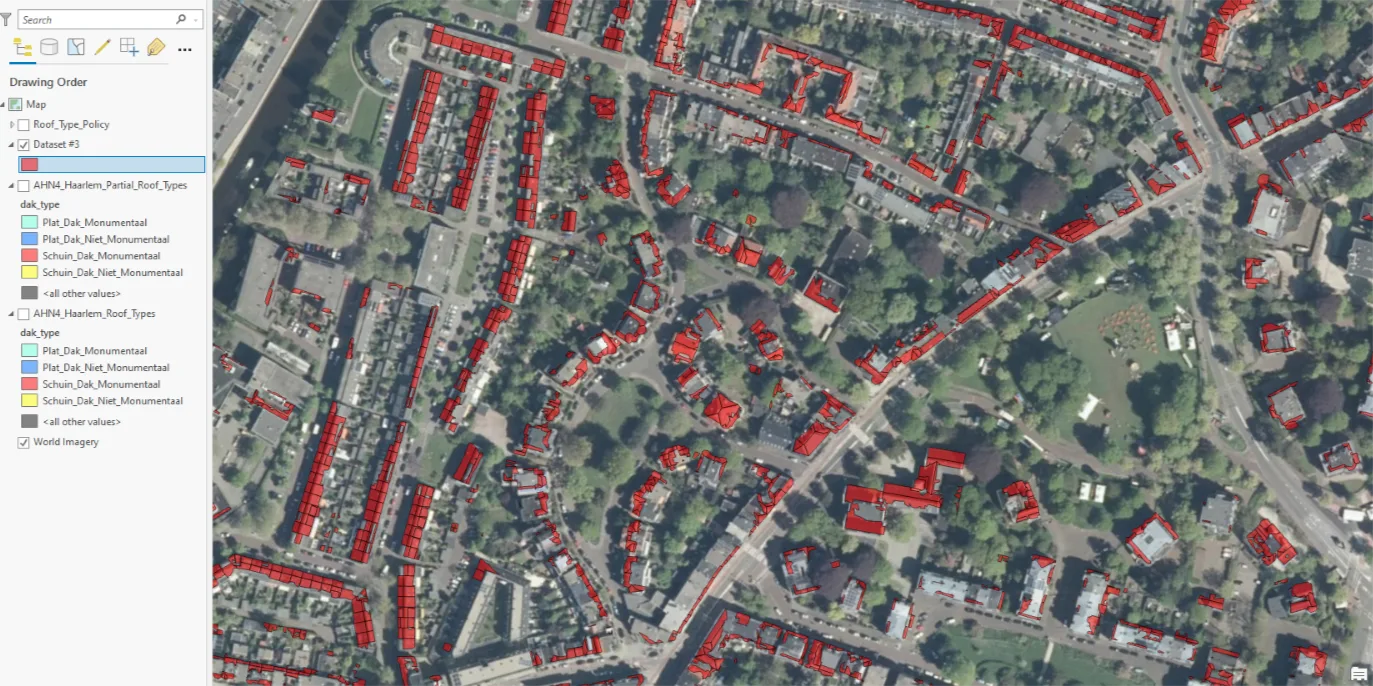 Op basis van deze geautomatiseerde resultaten kon de gemeente een beleidskaart opstellen. De kaart kun je hier bekijken. Met deze beleidskaart op hun openbare website kan de gemeente Haarlem nu voor elk dakdeel duidelijk aangeven welke gebieden in aanmerking komen voor plaatsing van zonnepanelen.