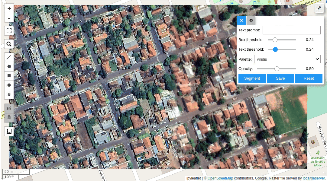 Zo zijn Facebook en andere grote namen de laatste tijd ook begonnen met het open-sourcen van hun nieuwste modellen, zodat iedereen hier ook hun eigen applicaties mee verder kunnen ontwikkelen. Zij hebben hun Segment Anything Model (SAM) openbaar gemaakt, waarbij alle objecten op foto’s gesegmenteerd en geclassificeerd kunnen worden op een slimme nieuwe manier. Door verder te bouwen op LLM’s en het SAM model, zijn hier ook al specialistische ruimtelijke tools voor gemaakt zoals Segment Geospatial. Hiermee kun je zelf ingevulde objecten segmenteren op luchtfoto’s door simpelweg in een tekstveld in te vullen wat je wilt herkennen!