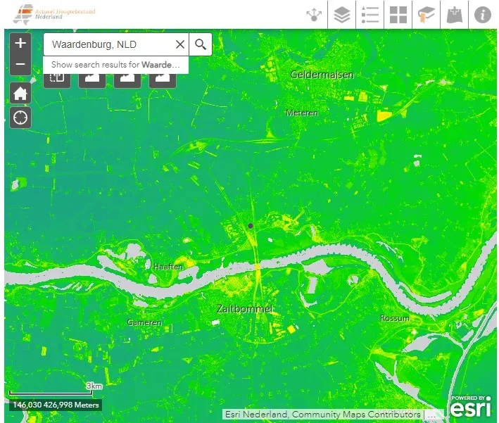 Afbeelding: de AHN (Actueel Hoogtebestand Nederland)-viewer. Tekst gaat verder onder de afbeelding.
